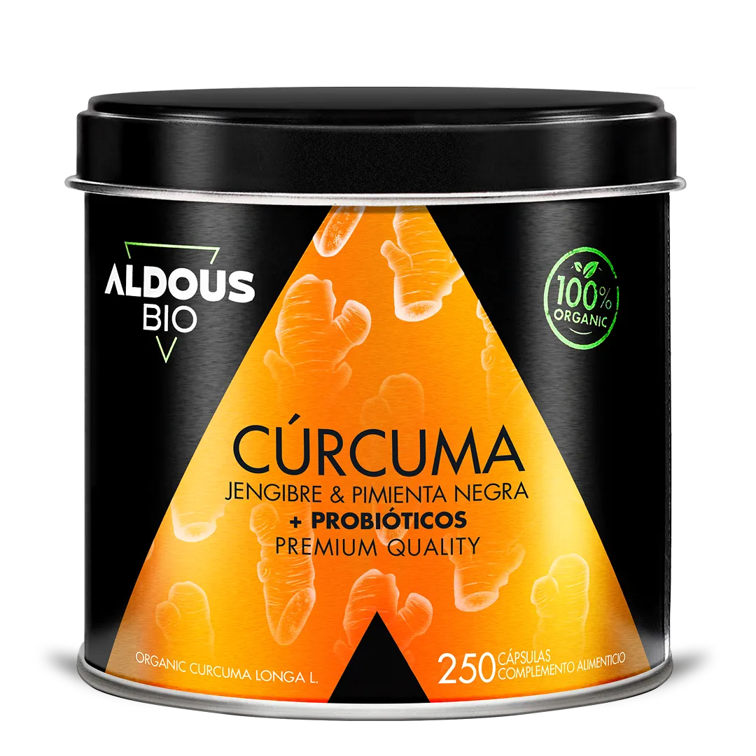 Polvo de cúrcuma ecológica (Curcuma longa L., rizoma), Cápsula de origen vegetal (Agente de recubrimiento: Hidroxipropilmetilcelulosa), Polvo de Jengibre ecológico (Zingiber Officinalle Roscoe, rizoma), Pimienta Negra ecológica en polvo (Piper nigrum L.), Mix de probióticos (Lactobacillus acidophilus LMG 8151, Bifidobacterium longum LMG 26652, Bifidobacterium bifidum LMG 25628, Bifidobacterium lactis LMG 18314).
