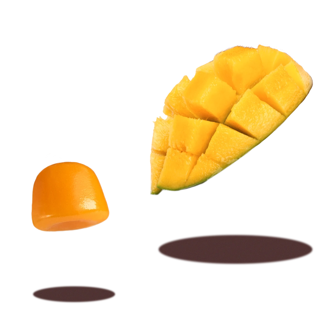 Sirope de glucosa, azúcar, agua, gelificante (pectina), extracto de cúrcuma (Curcuma longa L.), acidulante (ácido cítrico), regulador de acidez (citrato trisódico), aromas naturales, Lactobacillus paracasei, aceite vegetal (coco), extracto de jengibre (Zingiber officinale Roscoe), antiaglomerante (cera de carnauba), extracto de pimienta negra (Piper nigrum).
