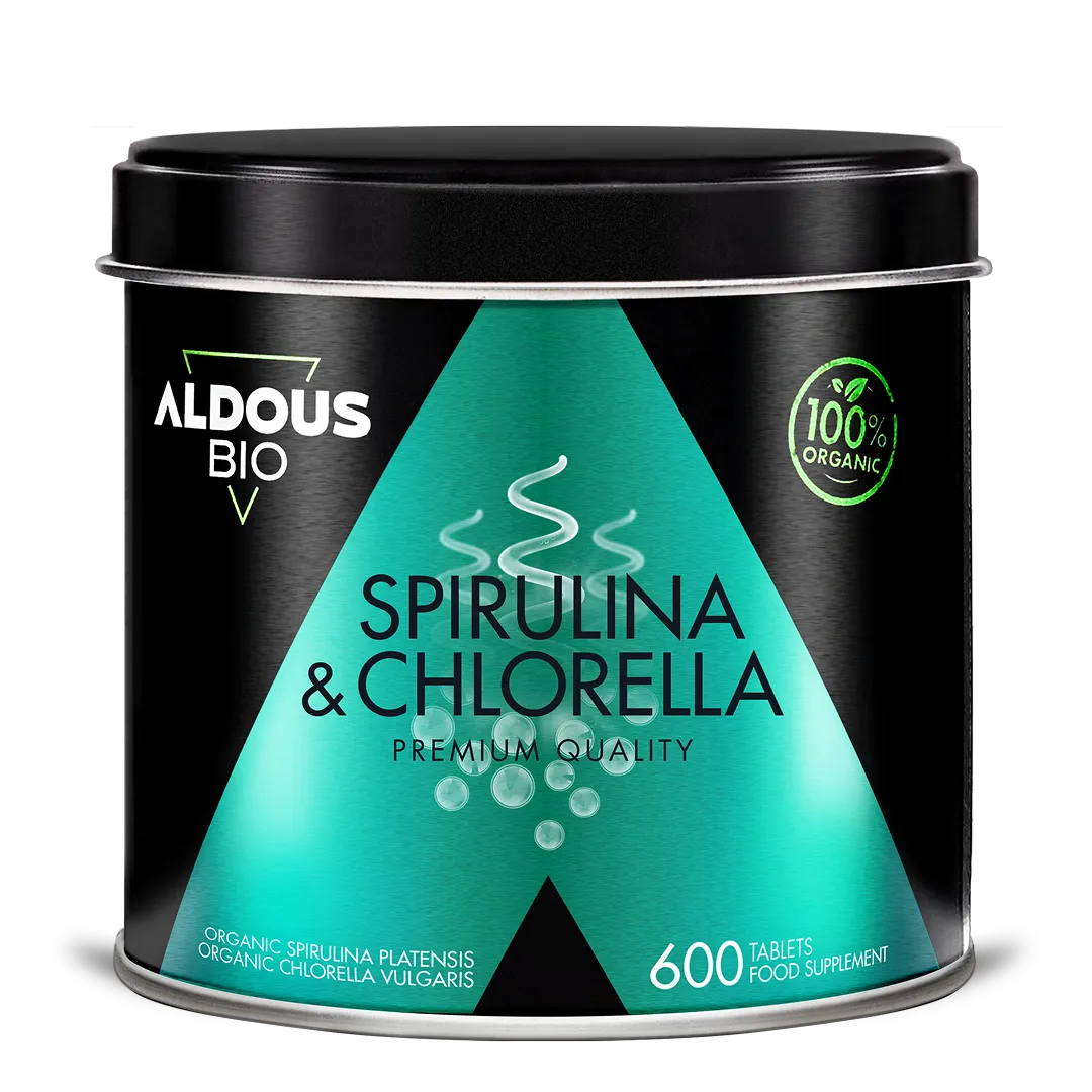 El Mix de Espirulina y Chlorella Aldous Bio contiene un 50% de espirulina y un 50% de chlorella, combinando los beneficios de las dos algas y proporcionando proteína, minerales, vitaminas del grupo B y ácidos grasos esenciales. Es un refuerzo para el sistema inmunitario y un apoyo a la detoxificación del organismo y también favorece el control del peso.